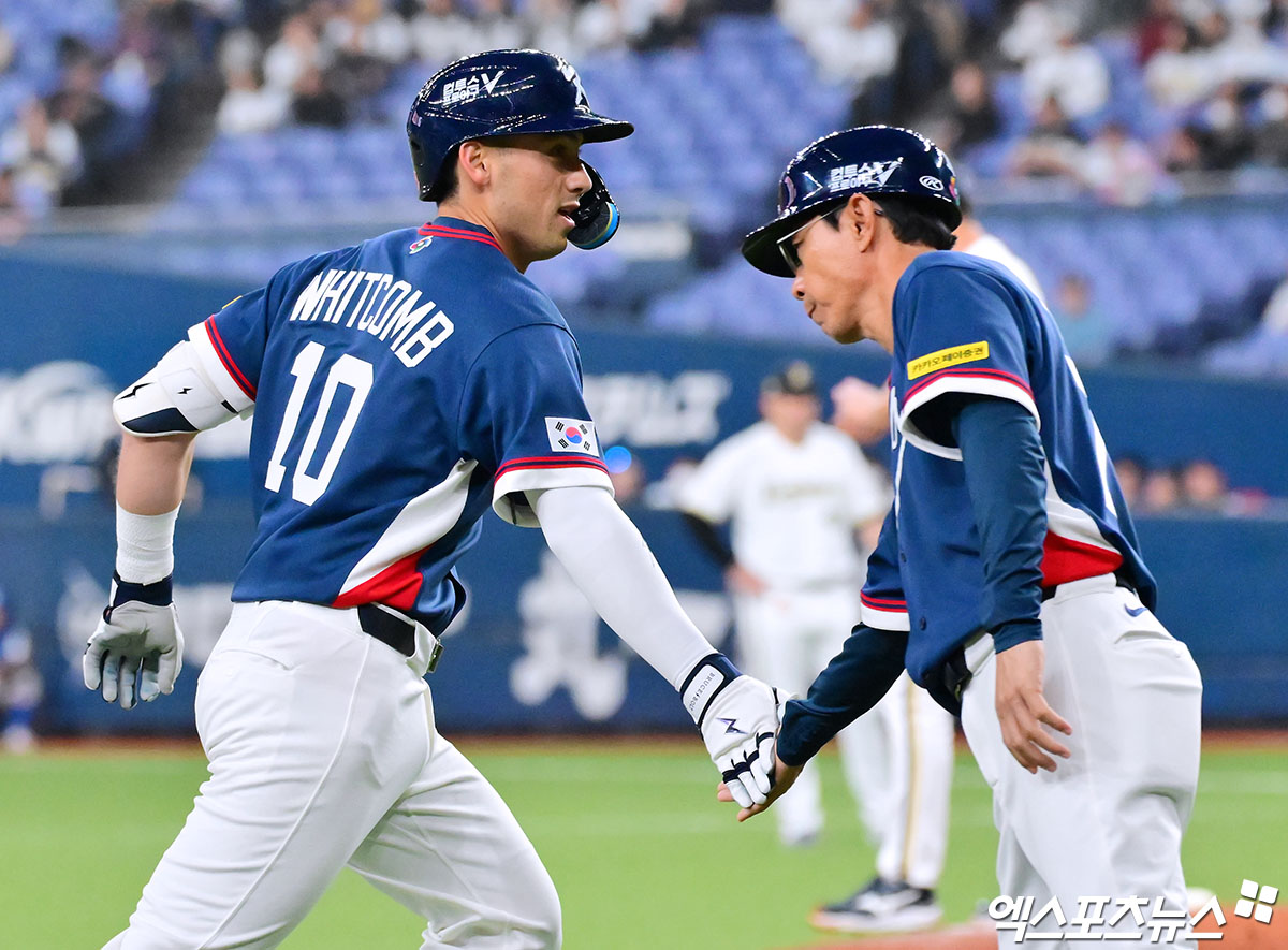 (엑스포츠뉴스 오사카(일본), 김한준 기자) 3일 오후 일본 오사카 교세라돔에서 열린 한국과 오릭스 버팔로스의 평가전 경기, 5회초 1사 한국 위트컴이 솔로 홈런을 날린 후 그라운드를 돌고 있다.