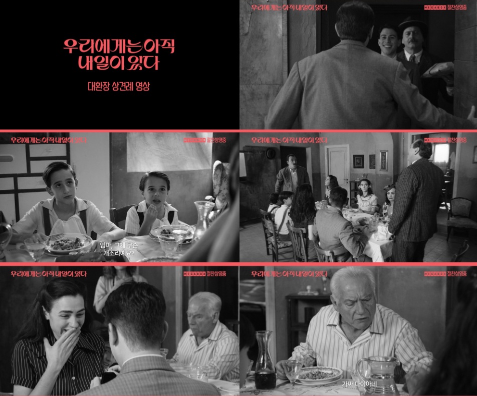 한편 오늘 개봉을 앞두고 공개된 '우리에게는 아직 내일이 있다'의 ‘대환장 상견례 영상’ 속에는 결혼을 앞둔 델리아의 딸 마르첼라의 험난한 상견례 현장이 포착, 시대와 국가를 넘어 공감대 폭발 에피소드가 눈길을 사로잡는다.
