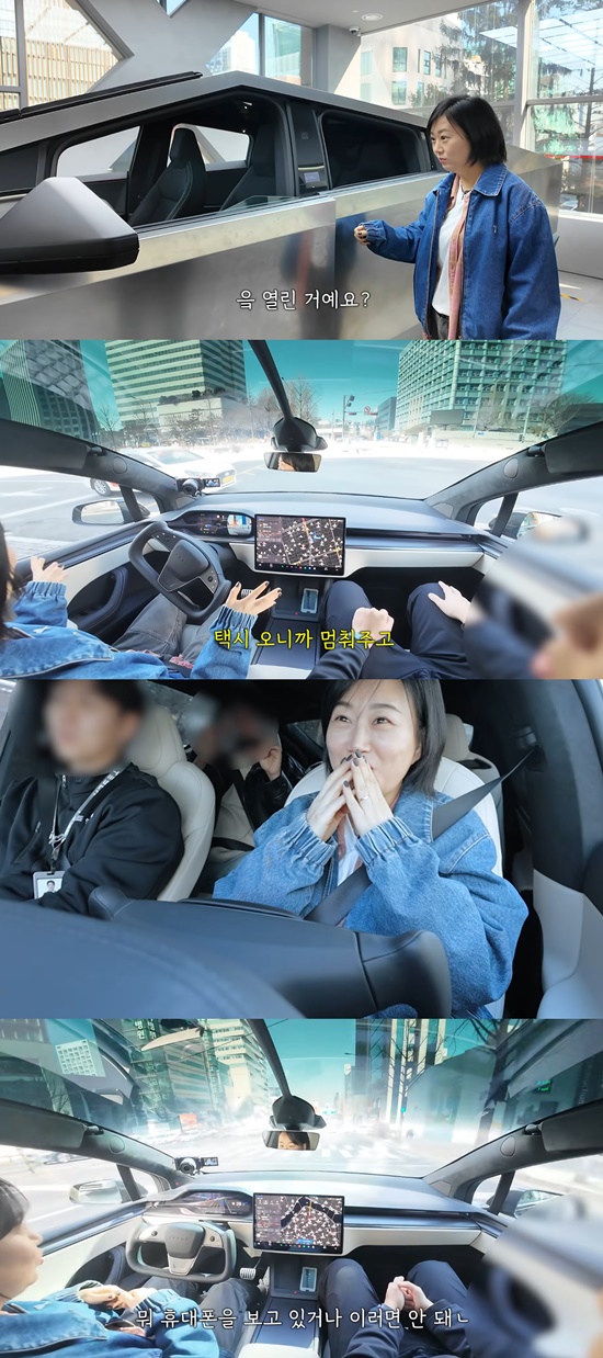 이어 장윤정은 사이버트럭을 구경했다. 그는 "무섭다 괜히. 이건 버튼도 없다"며 놀라워했다. 넓은 수납공간을 보며 "대박이다. 차박으로도 충분하다"고 감탄했다.
