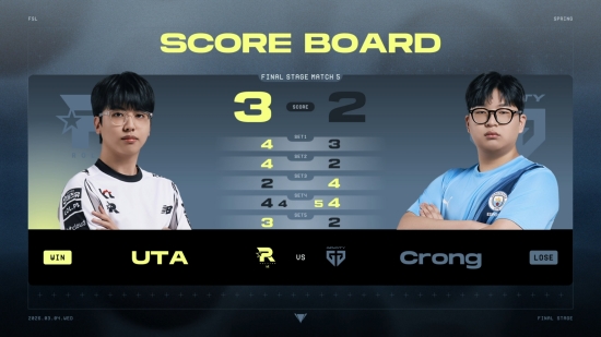 이후 Crong도 추가 골을 넣었지만 흐름을 바꾸기에는 시간이 부족했고, UTA가 전후반 3대2로 5세트 승리를 가져갔다. 이를 통해 그는 세트스코어 3대2 승리와 'FSL' 생존을 확정했다. 반면, Crong은 아쉽게 이번 대회에서의 여정을 마무리했다.