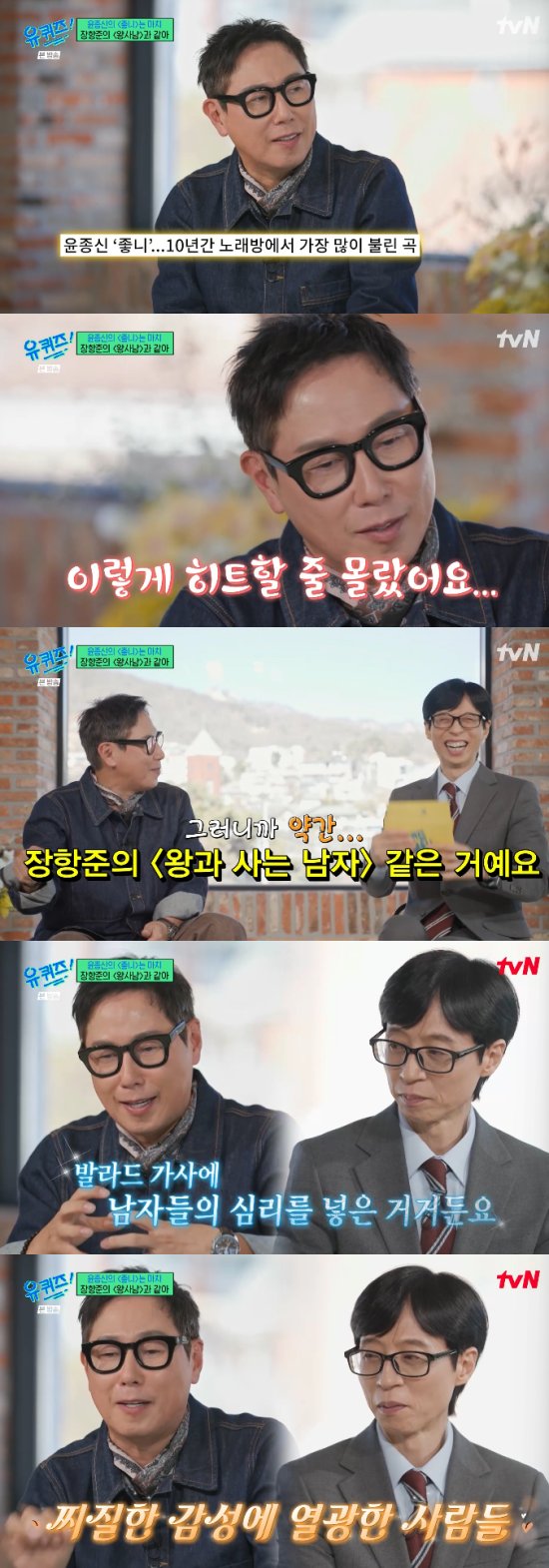 지난 4일 방송된 tvN 예능 프로그램 '유 퀴즈 온 더 블럭'에서는 가수 윤종신이 출연해 이야기를 나눴다.