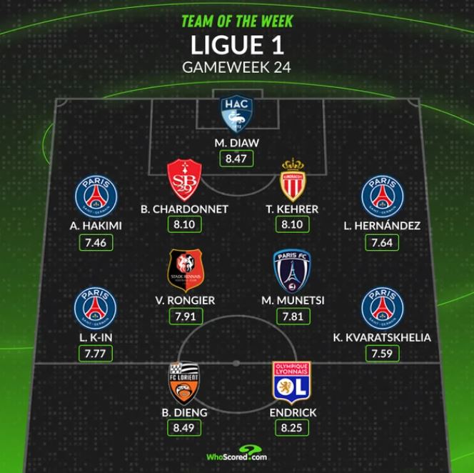 '후스코어드닷컴'은 3일(한국시간) 리그1 24라운드 베스트 일레븐을 공개했다.