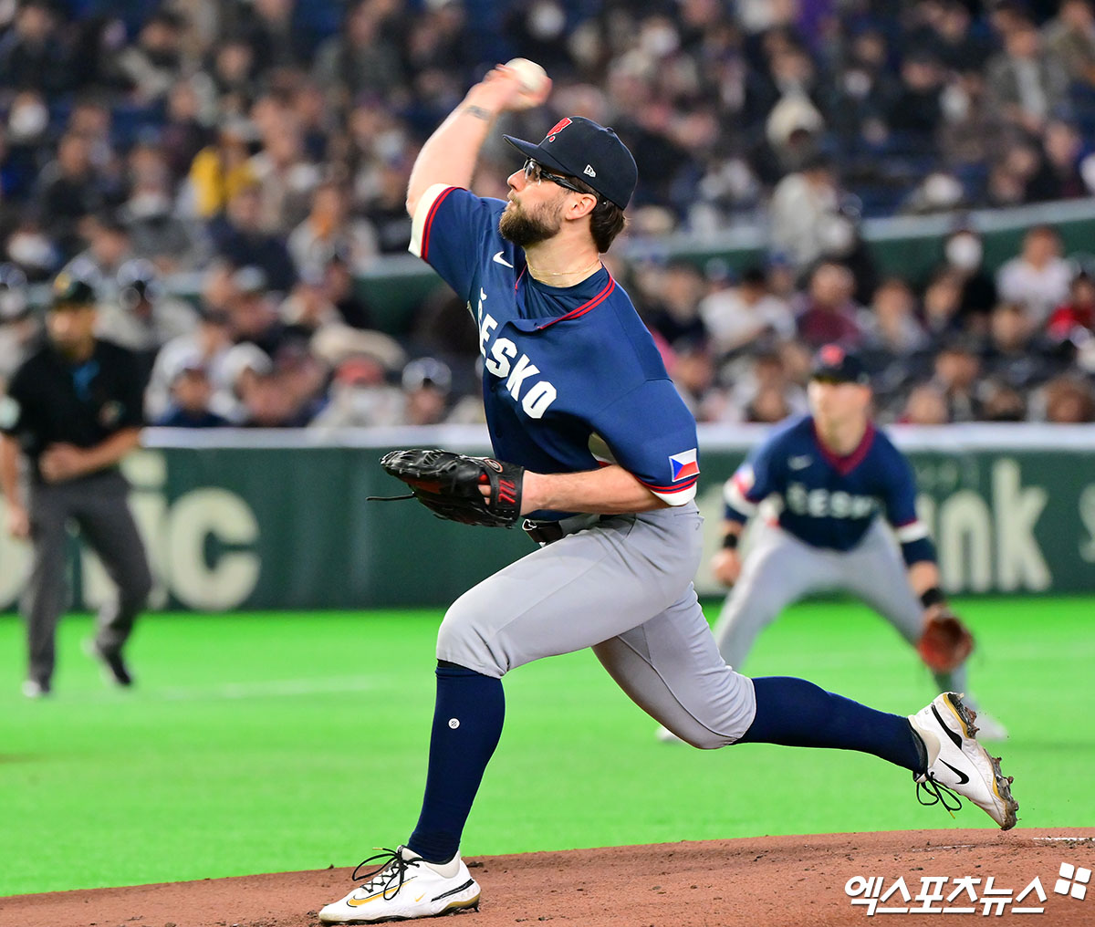 (엑스포츠뉴스 도쿄(일본), 김한준 기자) 5일 오후 일본 도쿄돔에서 열린 2026 월드베이스볼클래식(WBC) C조 체코와 대한민국의 경기, 1회말 체코 선발투수 파디샤크가 공을 힘차게 던지고 있다.