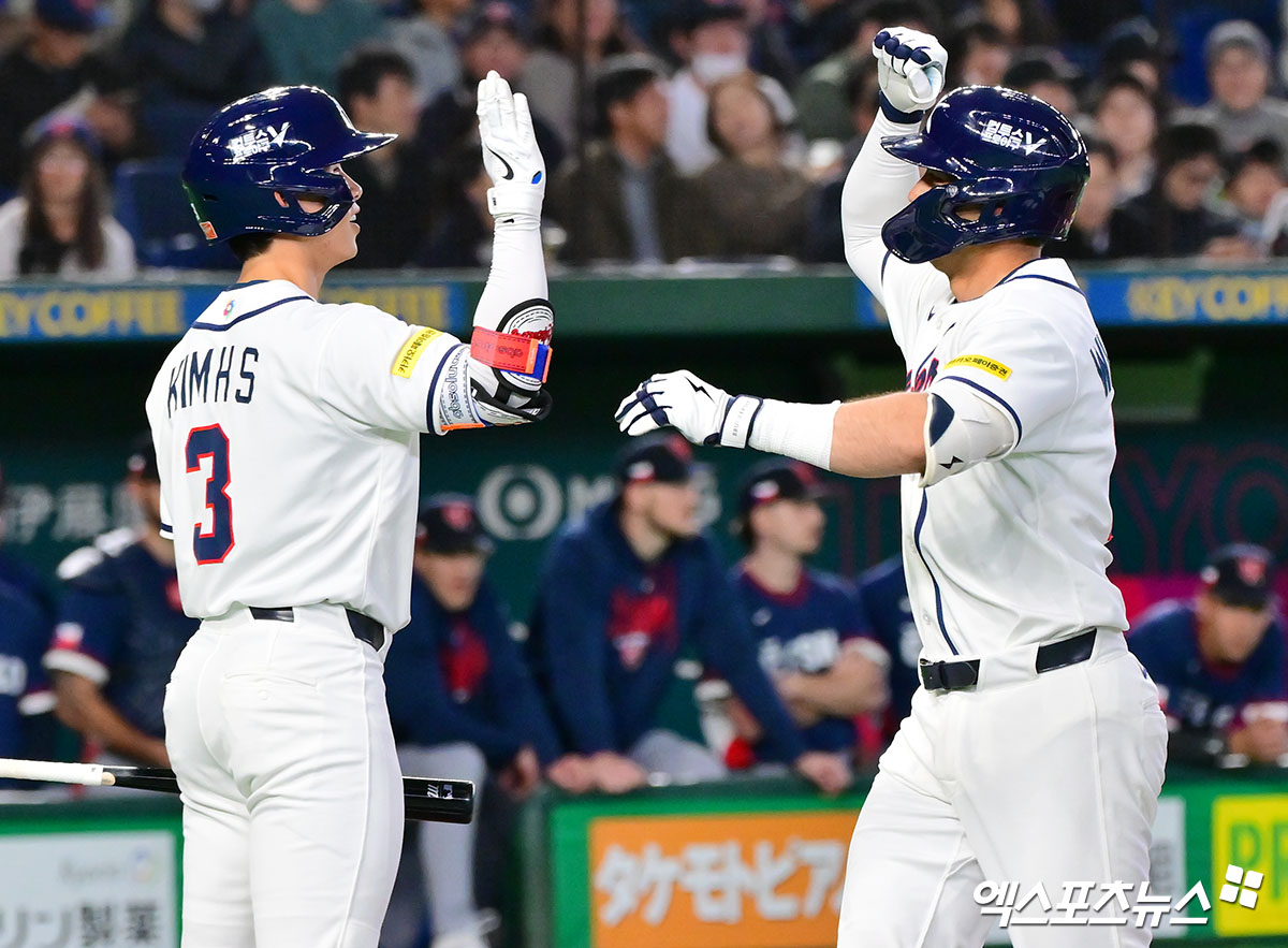 (엑스포츠뉴스 도쿄(일본), 김한준 기자) 5일 오후 일본 도쿄돔에서 열린 2026 월드베이스볼클래식(WBC) C조 체코와 대한민국의 경기, 3회말 1사 한국 위트컴이 솔로 홈런을 날린 후 기뻐하고 있다.