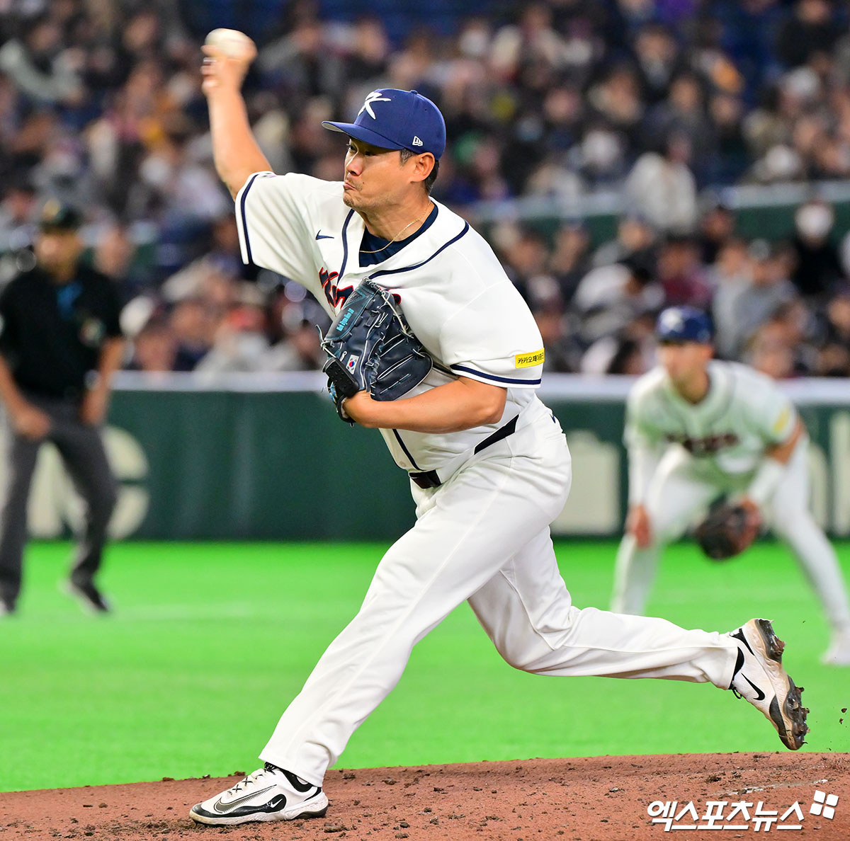 (엑스포츠뉴스 도쿄(일본), 김한준 기자) 5일 오후 일본 도쿄돔에서 열린 2026 월드베이스볼클래식(WBC) C조 체코와 대한민국의 경기, 4회초 한국 노경은이 공을 힘차게 던지고 있다.
