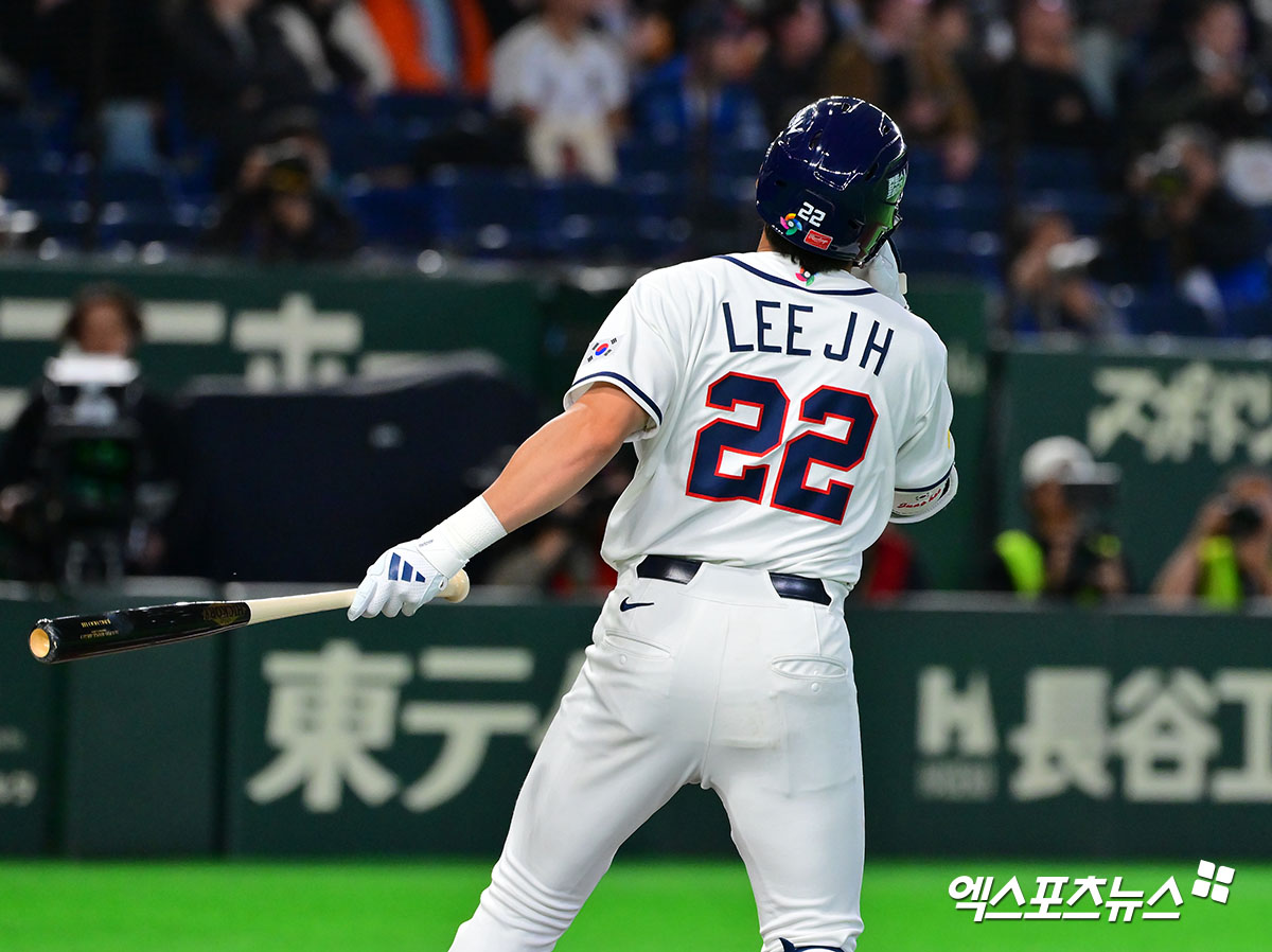 (엑스포츠뉴스 도쿄(일본), 김한준 기자) 5일 오후 일본 도쿄돔에서 열린 2026 월드베이스볼클래식(WBC) C조 체코와 한국의 경기, 6회말 2사 한국 이정후가 타격을 하고 있다.