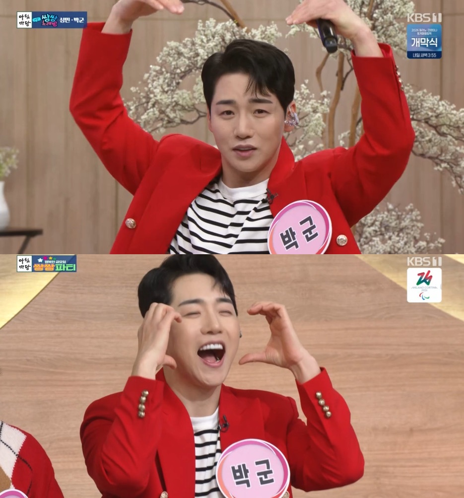 6일 KBS 1TV '아침마당' 쌍쌍파티에 가수 박군이 출연했다. 이날 박군은 "드디어 박군이 쌍쌍파티에 왔다. 저의 꿈의 무대였다"라며 시청자와 방청객에게 인사를 전했다.
