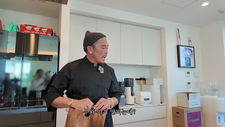 추성훈은 주방에서 플라스틱 도마를 발견하곤 "다행이다 진짜"라며 안도의 한숨을 쉬었다.
