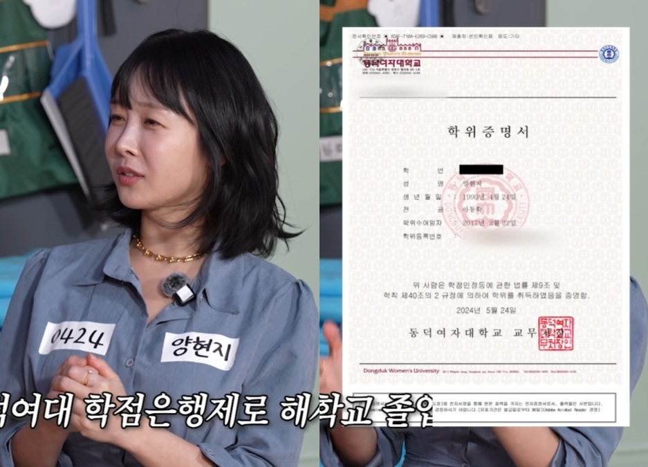이어 "전 동덕여대 학점은행제로 대학교 4년제 수료증은 같다. 대학교 졸업증서긴 하지 않나. 그런데 이걸 어떻게 이야기해야 하냐. 난 대학이 인생에서 중요한 게 아니라고 생각한다. 그걸로 굳이 날 낮출 필요 없다고 생각한다"고 전했다.