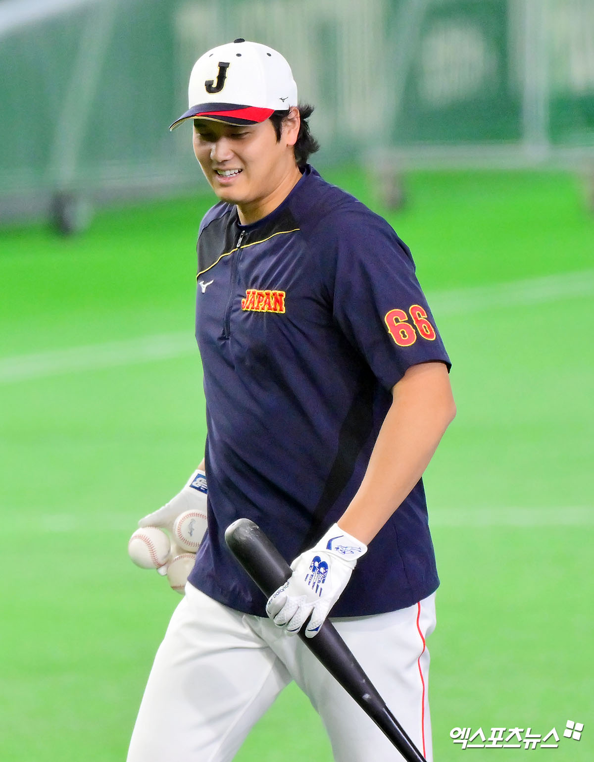 오타니는 6일 경기 전 연습에서 그라운드로 나와 프리 배팅 훈련에 임했다. 오타니는 타구를 연신 외야 관중석 위 상단 벽을 맞히는 괴력으로 도쿄돔에 모인 관중들의 탄성을 자아내게 했다. 오타니의 연습을 보기 위해 현지 취재진도 그라운드에 빈틈 없이 빼곡히 모여 뜨거운 열기를 뿜었다.