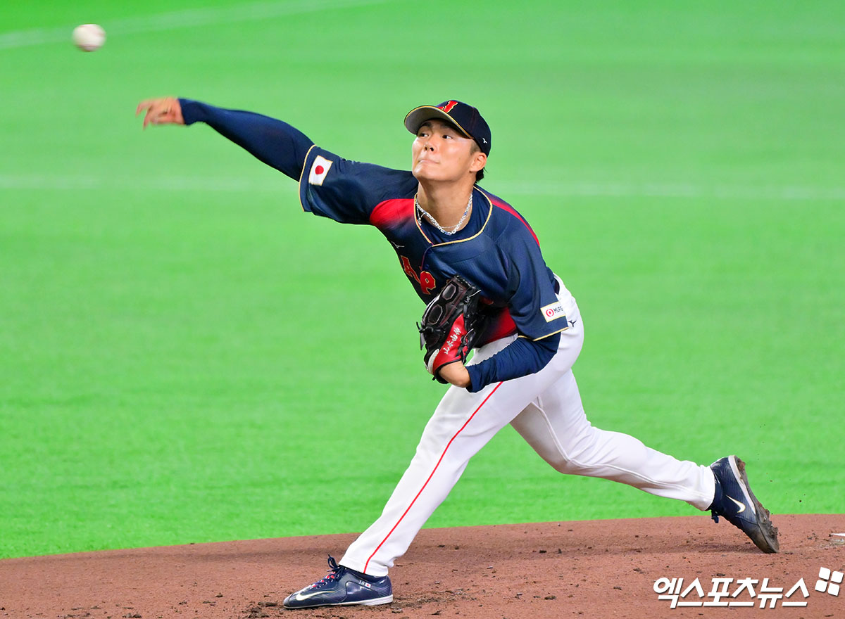 (엑스포츠뉴스 도쿄(일본), 김한준 기자) 6일 오후 일본 도쿄돔에서 열린 2026 월드베이스볼클래식(WBC) C조 대만과 일본의 경기, 1회말 일본 선발투수 야마모토가 공을 힘차게 던지고 있다.