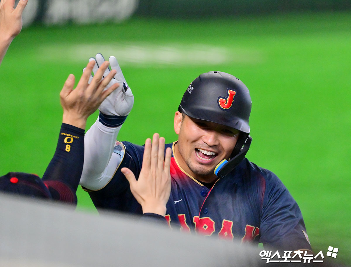 (엑스포츠뉴스 도쿄(일본), 김한준 기자) 6일 오후 일본 도쿄돔에서 열린 2026 월드베이스볼클래식(WBC) C조 대만과 일본의 경기, 2회초 2사 1루 일본 스즈키가 요시다가 1타점 3루타때 득점에 성공하고 있다.