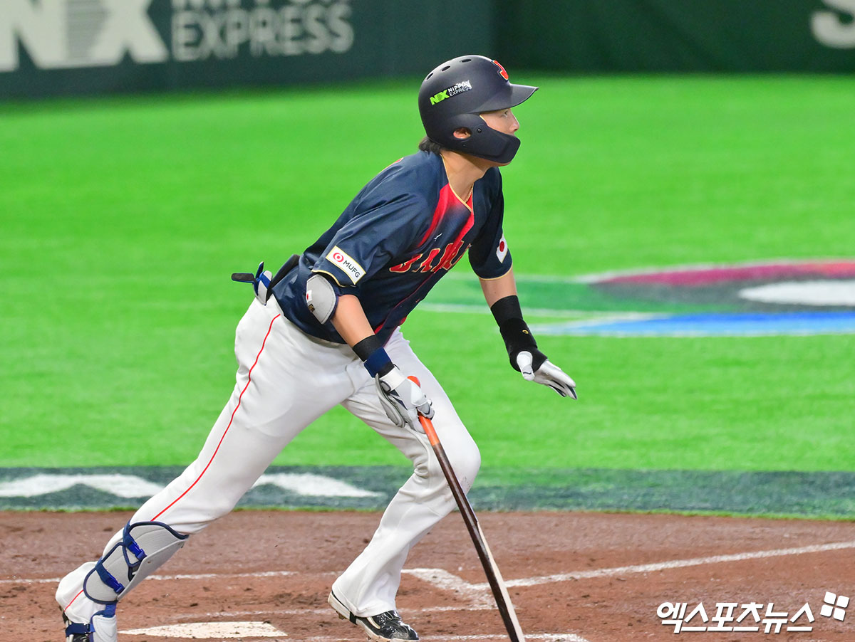 (엑스포츠뉴스 도쿄(일본), 김한준 기자) 6일 오후 일본 도쿄돔에서 열린 2026 월드베이스볼클래식(WBC) C조 대만과 일본의 경기, 2회초 2사 만루 일본 겐다가 2타점 적시타를 날리고 있다.