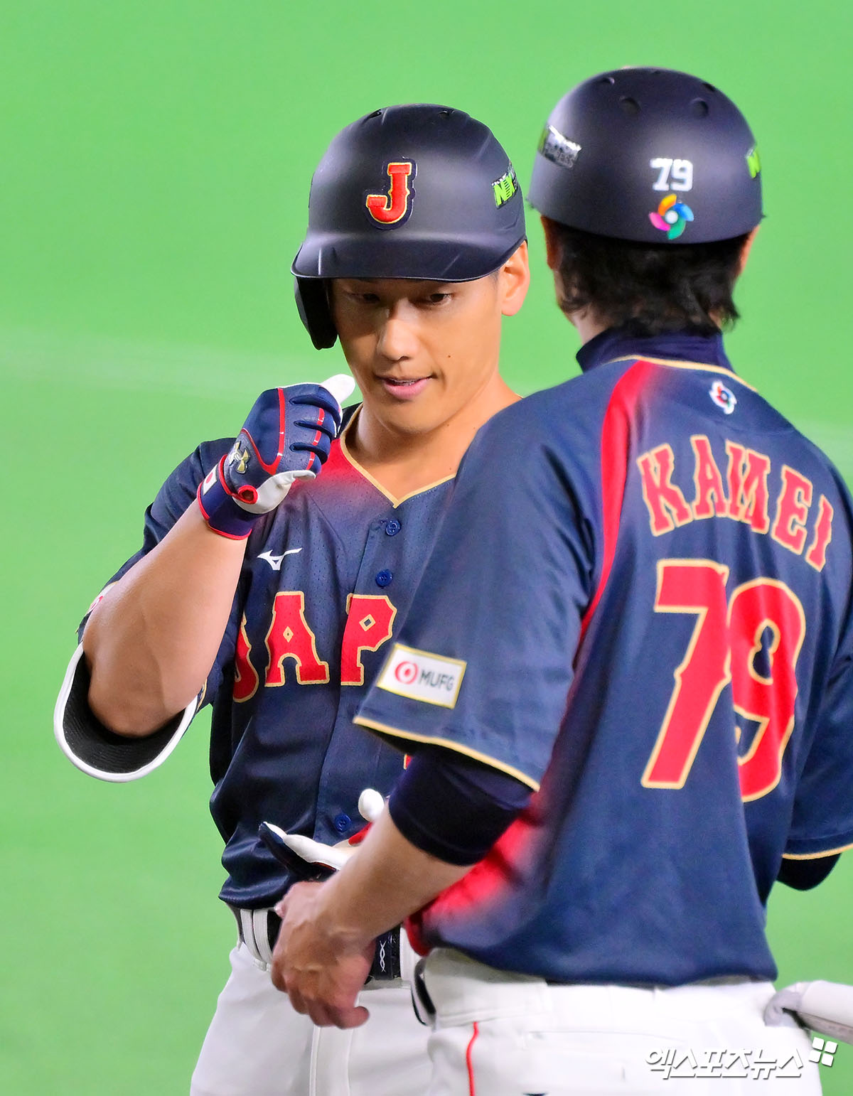 (엑스포츠뉴스 도쿄(일본), 김한준 기자) 6일 오후 일본 도쿄돔에서 열린 2026 월드베이스볼클래식(WBC) C조 대만과 일본의 경기, 3회초 무사 1루 일본 요시다가 좌전안타를 날리고 있다.