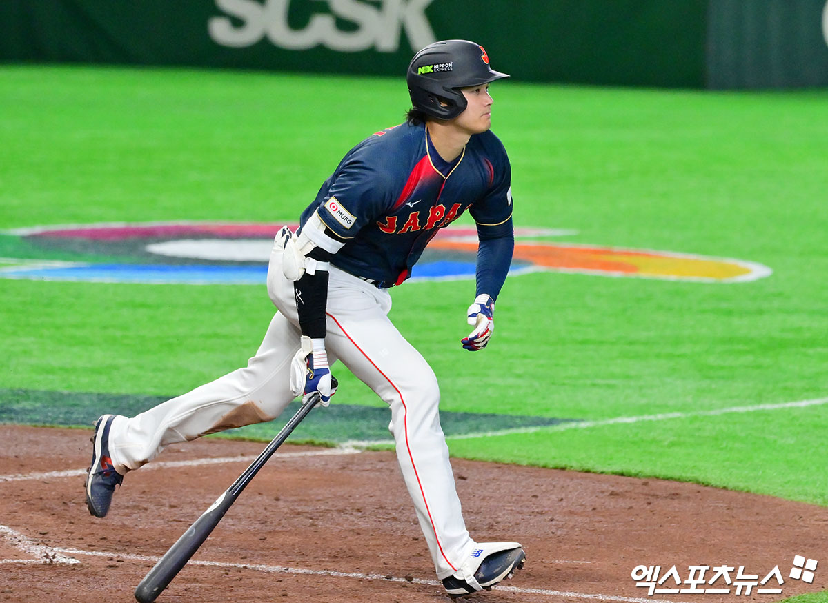 (엑스포츠뉴스 도쿄(일본), 김한준 기자) 6일 오후 일본 도쿄돔에서 열린 2026 월드베이스볼클래식(WBC) C조 대만과 일본의 경기, 4회초 일본 오타니가 타격을 하고 있다.