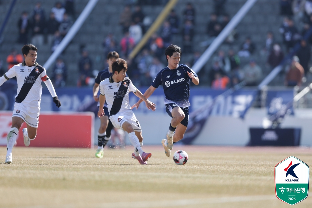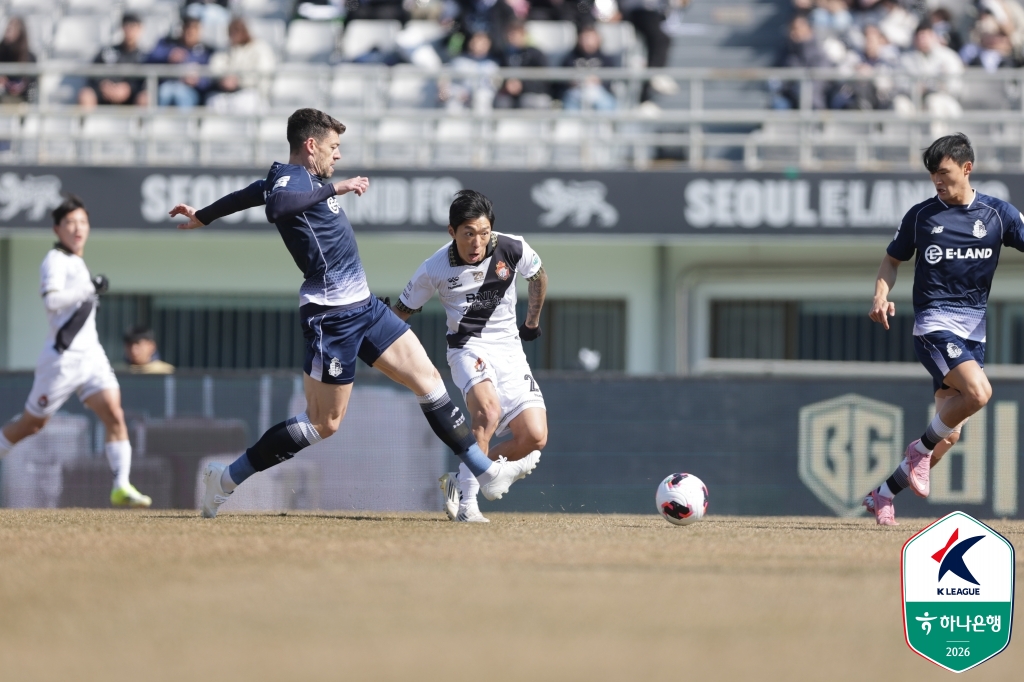 이랜드는 7일 서울 목동종합운동장에서 열린 경남과의 하나은행 K리그2 2026 2라운드 홈 경기에서 상대 이찬동의 자책골에 힘입어 1-0으로 승리했다.