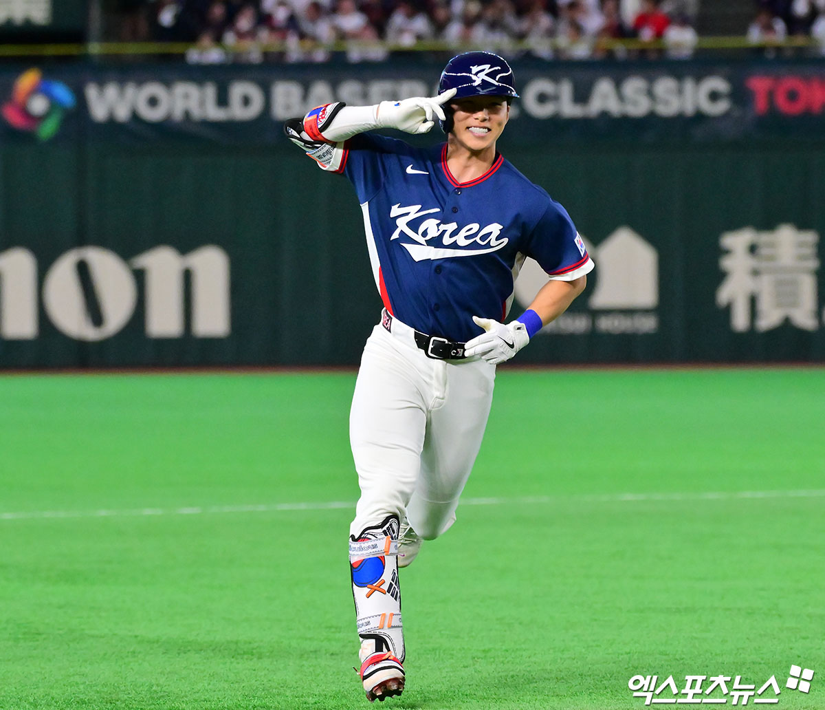 7일 오후 일본 도쿄돔에서 열린 2026 월드베이스볼클래식(WBC) C조 한국과 일본의 경기, 4회초 1사 1루 한국 김혜성이 투런 홈런을 날린 후 기뻐하고 있다. 도쿄, 김한준 기자