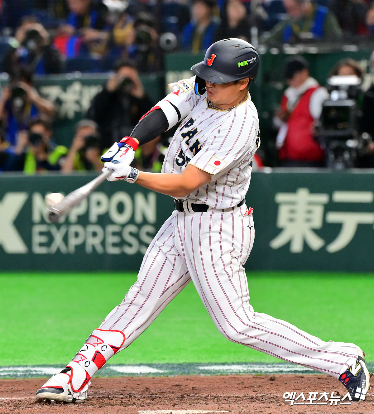 (엑스포츠뉴스 도쿄(일본), 김한준 기자) 7일 오후 일본 도쿄돔에서 열린 2026 월드베이스볼클래식(WBC) C조 한국과 일본의 경기, 8회말 일본 무라카미가 우전안타를 날리고 있다.