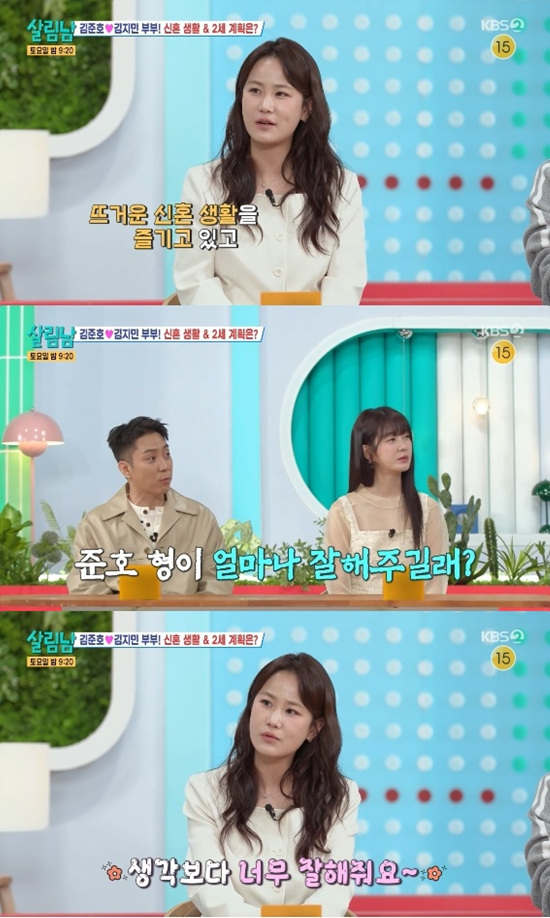 7일 방송된 KBS 2TV '살림하는 남자들 시즌2'에서는 김지민이 스페셜MC로 출연해 결혼 생활에 대한 만족감을 드러내는 모습이 전파를 탔다.