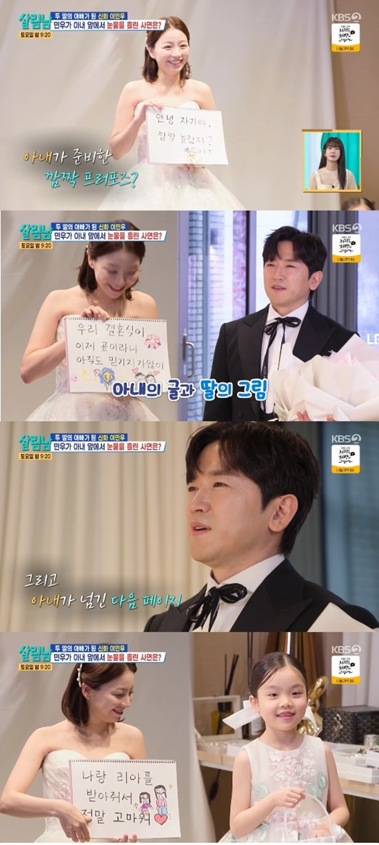 이민우는 이아미가 쓴 "나랑 리아를 받아줘서 정말 고마워. 내가 오빠를 지켜줄 거야"라는 말에 눈시울을 붉히더니 자신이 쓴 편지를 읽으면서도 눈물을 쏟았다.