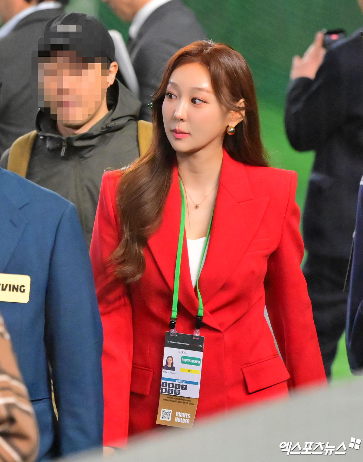 (엑스포츠뉴스 도쿄(일본), 김한준 기자) 7일 오후 일본 도쿄돔에서 열린 2026 월드베이스볼클래식(WBC) C조 한국과 일본의 경기, 박지영 아나운서가 그라운드로 들어서고 있다.