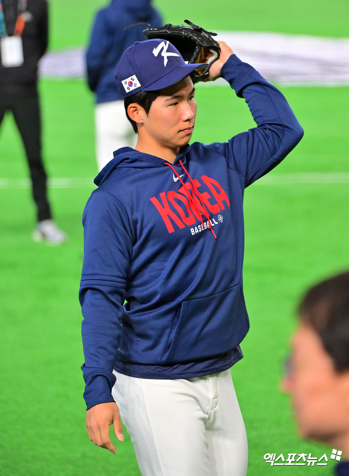 (엑스포츠뉴스 도쿄(일본), 김한준 기자) 8일 오후 일본 도쿄돔에서 열린 2026 월드베이스볼클래식(WBC) C조 한국과 대만의 경기, 한국 김혜성이 훈련에 임하고 있다.