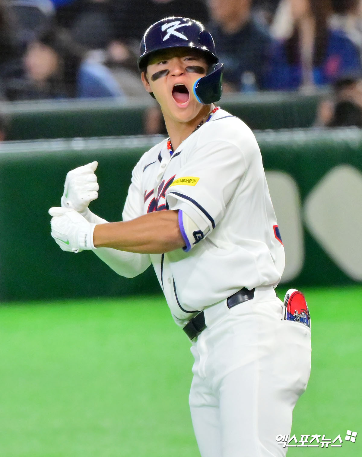 (엑스포츠뉴스 도쿄(일본), 김한준 기자) 8일 오후 일본 도쿄돔에서 열린 2026 월드베이스볼클래식(WBC) C조 한국과 대만의 경기, 6회말 1사 1루 한국 김도영이 투런 홈런을 날린 후 기뻐하고 있다.