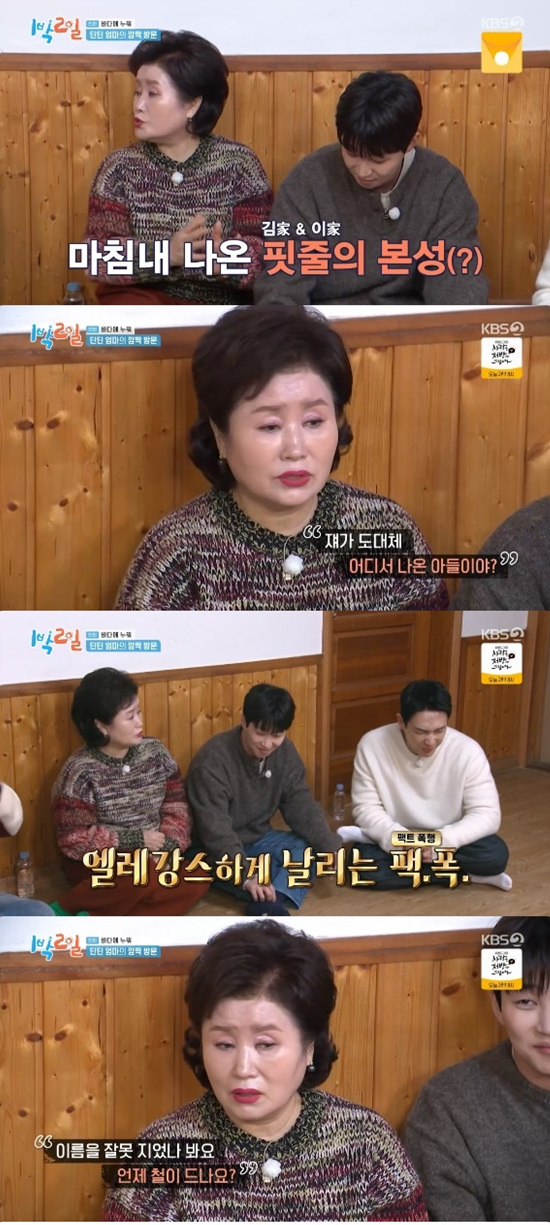 8일 방송된 KBS 2TV '1박 2일 시즌4'에서는 딘딘 어머니가 아들의 개념연예인 등극에 대한 속내를 전하는 모습이 전파를 탔다.
