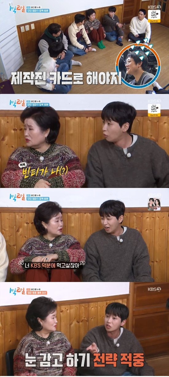 딘딘 어머니는 딘딘을 두고 "얘 어떨 때 보면 빈티가 나. 너 KBS 덕분에 먹고 살잖아"라고 말해 웃음을 자아냈다.