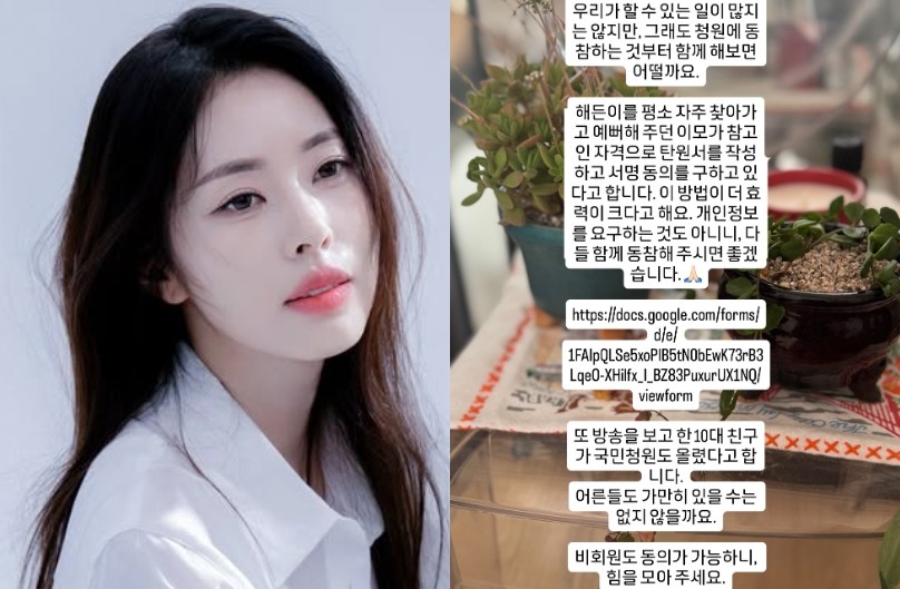 이어 "우리가 할 수 있는 일이 많지는 않지만, 그래도 청원에 동참하는 것부터 함께 해보면 어떨까"라며 청원 링크를 안내했다.
