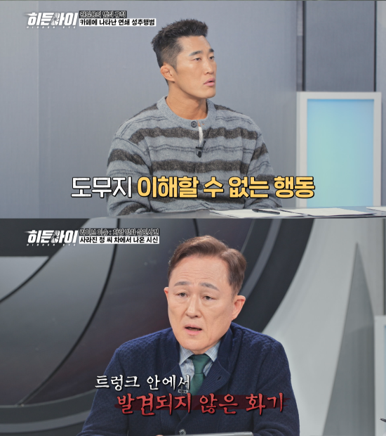경찰은 그를 유력한 범인으로 특정해 수사를 진행했고, 그 과정에서 뜻밖의 사실이 드러난다. 바로 정 씨와 CCTV 속 남성이 한 여성을 사이에 둔 삼각관계였다는 것.