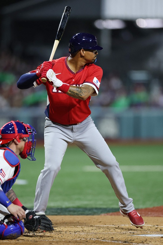 상대 캐나다의 타선에는 2024시즌 두산 베어스 유니폼을 입었던 제러드 영이 4번타자 겸 지명타자로 선발 출전했다. 함께 캐나다 대표팀 명단에 승선한 NC 맷 데이비슨은 2경기 연속 벤치를 달궜다.