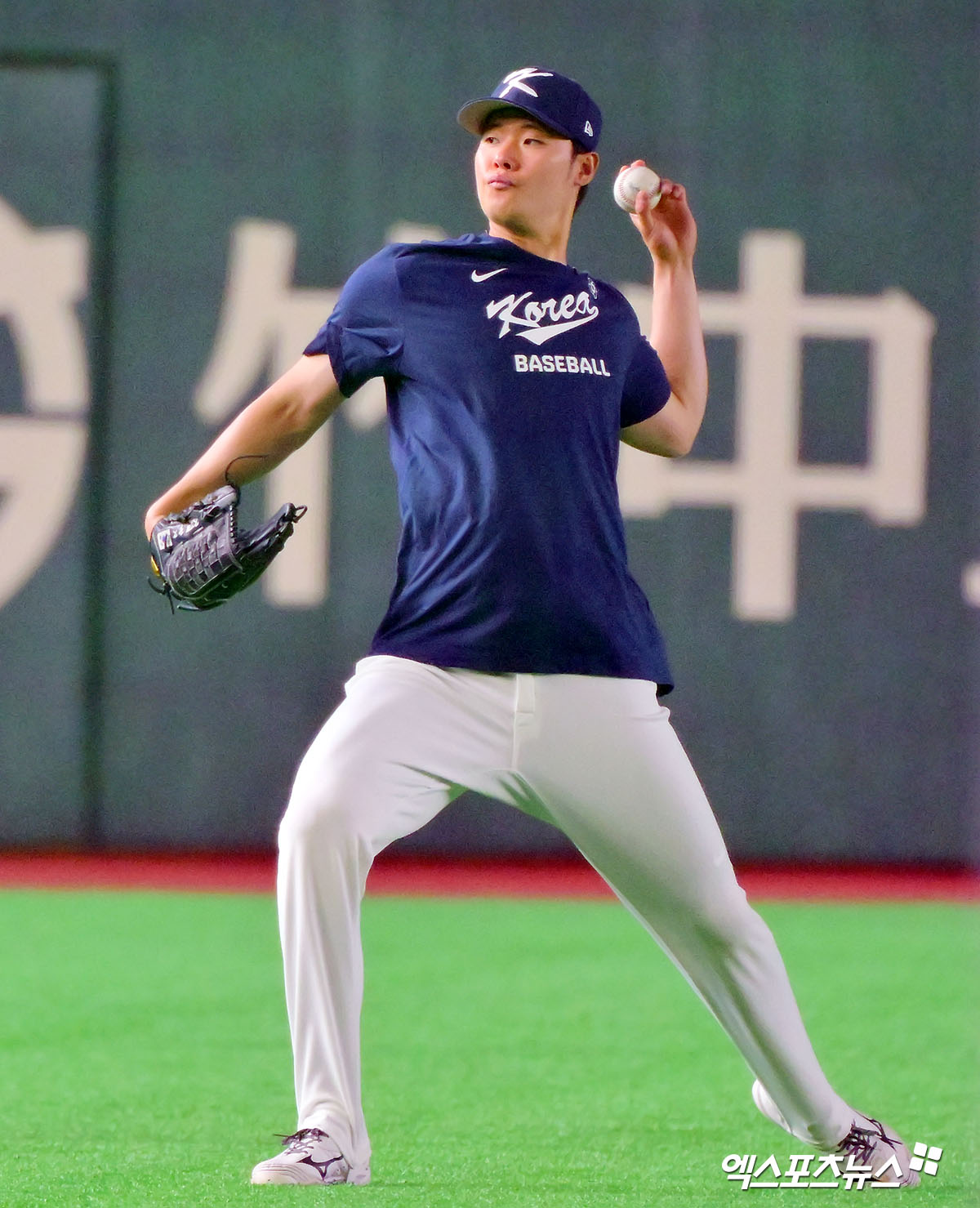 (엑스포츠뉴스 도쿄(일본), 김한준 기자) 9일 오후 일본 도쿄돔에서 열린 2026 월드베이스볼클래식(WBC) C조 한국과 호주의 경기, 한국 김영규가 훈련에 임하고 있다.