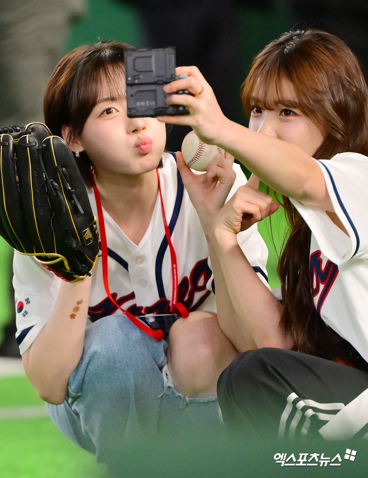 (엑스포츠뉴스 도쿄(일본), 김한준 기자) 9일 오후 일본 도쿄돔에서 열린 2026 월드베이스볼클래식(WBC) C조 한국과 호주의 경기, 하지원-이다혜 치어리더가 기념촬영을 갖고 있다.