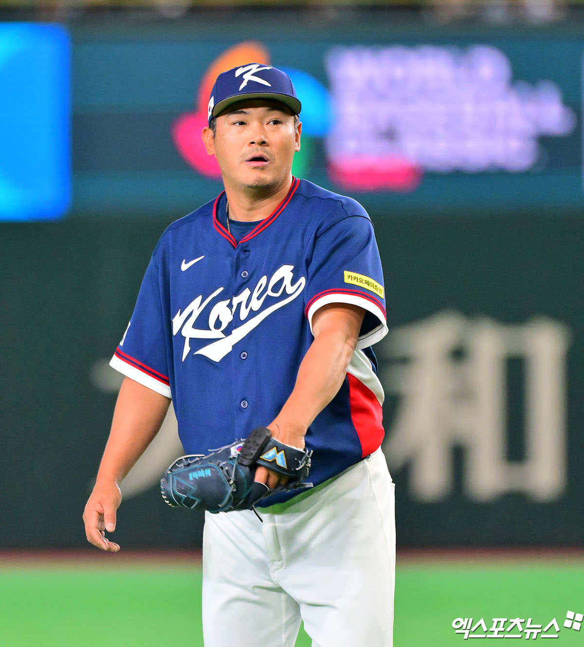 (엑스포츠뉴스 도쿄(일본), 김한준 기자) 9일 오후 일본 도쿄돔에서 열린 2026 월드베이스볼클래식(WBC) C조 한국과 호주의 경기, 3회말 한국 노경은이 더그아웃으로 향하고 있다.