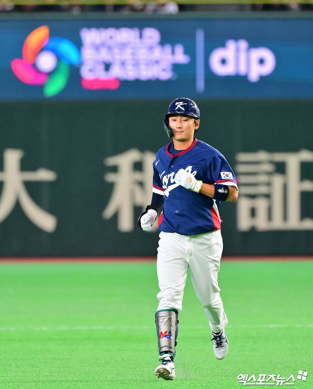 (엑스포츠뉴스 도쿄(일본), 김한준 기자) 9일 오후 일본 도쿄돔에서 열린 2026 월드베이스볼클래식(WBC) C조 한국과 호주의 경기, 4회초 1사 한국 신민재가 내야땅볼로 아웃된 후 더그아웃으로 향하고 있다.