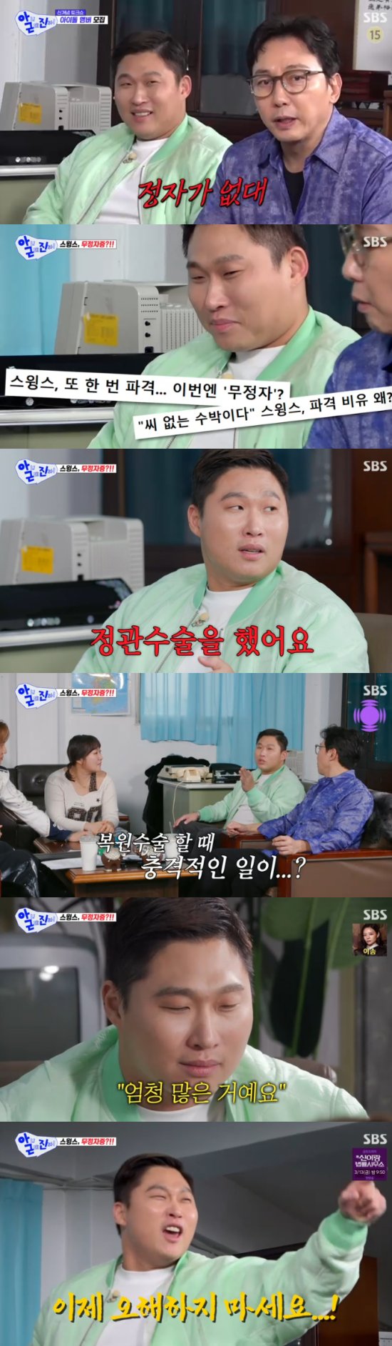 특히 이날 스윙스는 '무정자증'에 대한 오해를 해명했다. 스윙스는 "8년 전 쯤 아이를 낳지 않겠다고 결심했다. 그래서 병원에 가서 정관수술을 했다. 그런데 재작년에 갑자기 아이를 갖고 싶더라. 아이들이 예뻐보이기 시작했다. 그래서 복원수술을 했다"고 전했다.