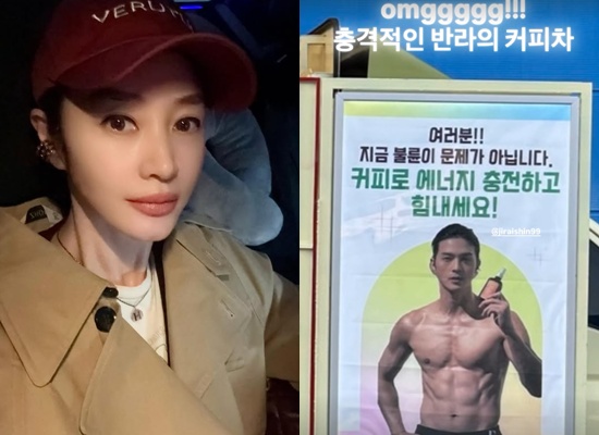 김혜수는 10일 자신의 계정에 "omggggg! 충격적인 반라의 커피차"라는 글과 함께 사진을 게재했다.