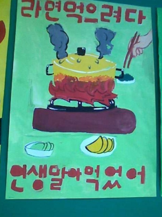 초등학생의 불조심 포스터… '라면 먹으려다 인생 말아 먹었어'