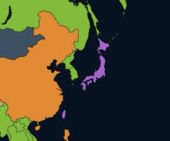 사진 속엔 각국에서 가장 인기 있는 스포츠가 무엇인지 색으로 표시됐다. 축구는 녹색이고, 야구는 보라색으로 정했다.