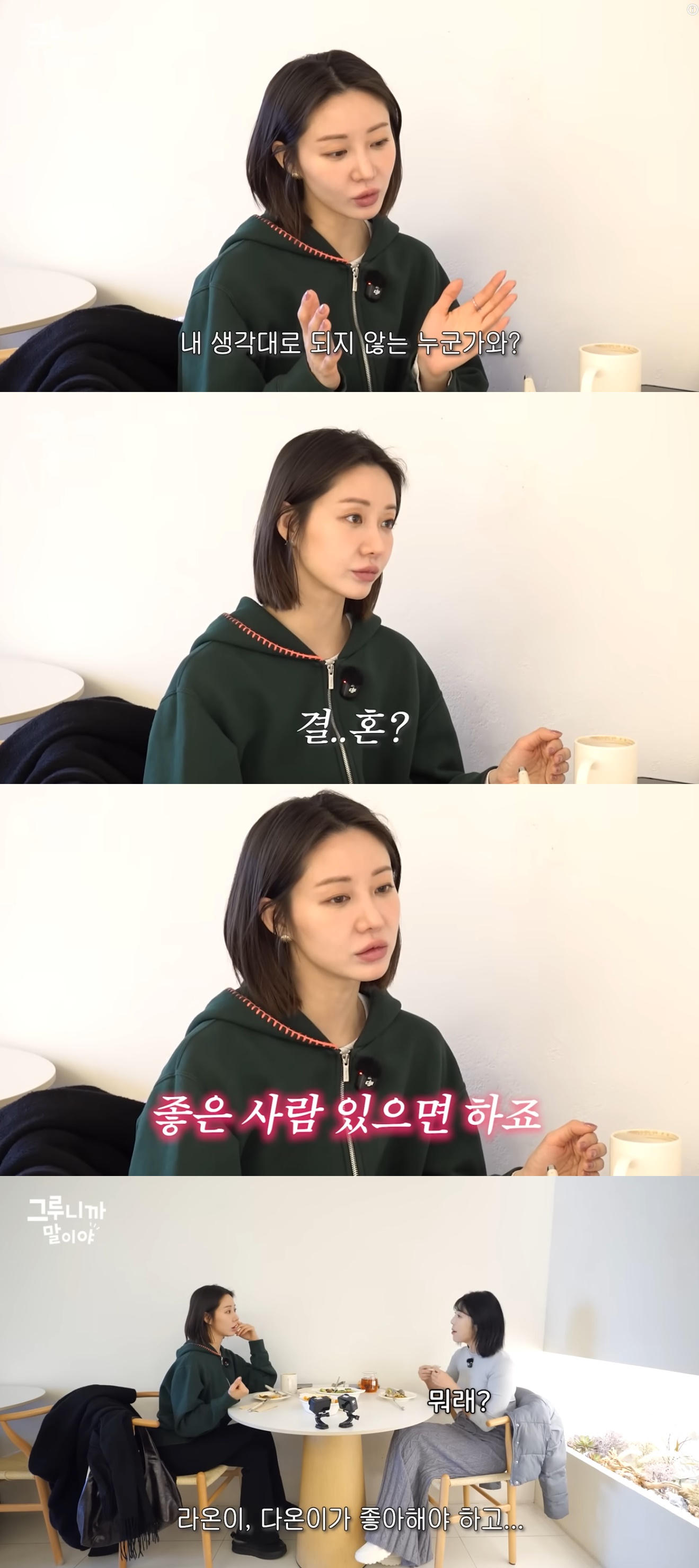 10일 한그루 유튜브 '그루니까말이야'에는 '사유리 언니 만나자마자 입 터진… 싱글맘들의 진짜 속마음'이라는 영상이 게재됐다.