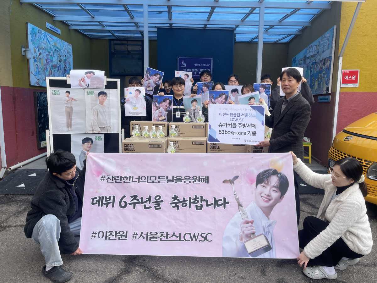 최근 이찬원의 팬클럽 '서울찬스 LCW.SC'는 3월 이찬원의 데뷔 6주년을 기념해 서울 정릉종합사회복지관에 주방세제(슈가버블) 1,008개를 전달했다고 밝혔다.