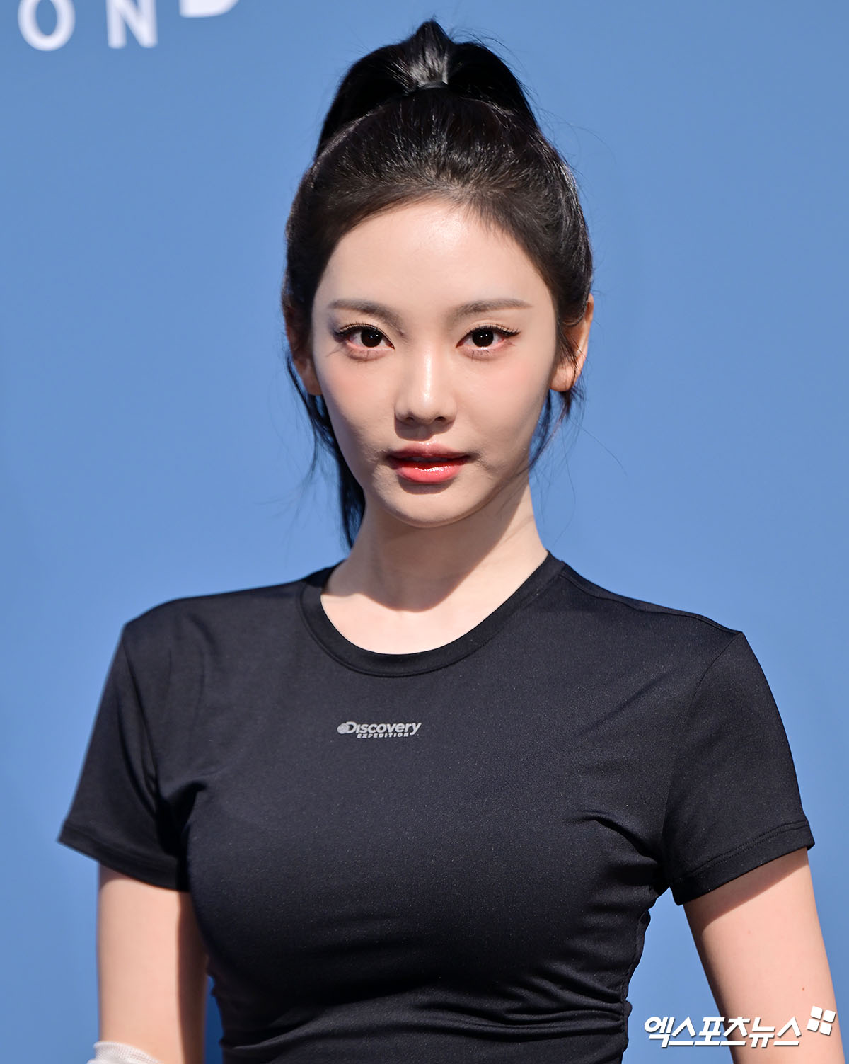 이날 행사에 참석한 에스파 닝닝이 포즈를 취하고 있다.