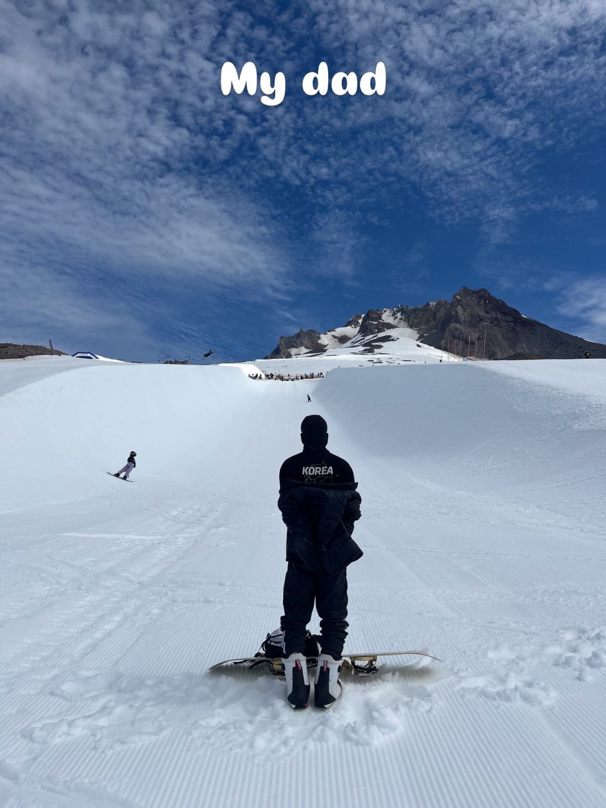 아래에서 다른 선수들의 연기가 모두 끝나고 우승이 확정되자, 최가온은 아버지에게 달려가 우승의 기쁨을 만끽했다.