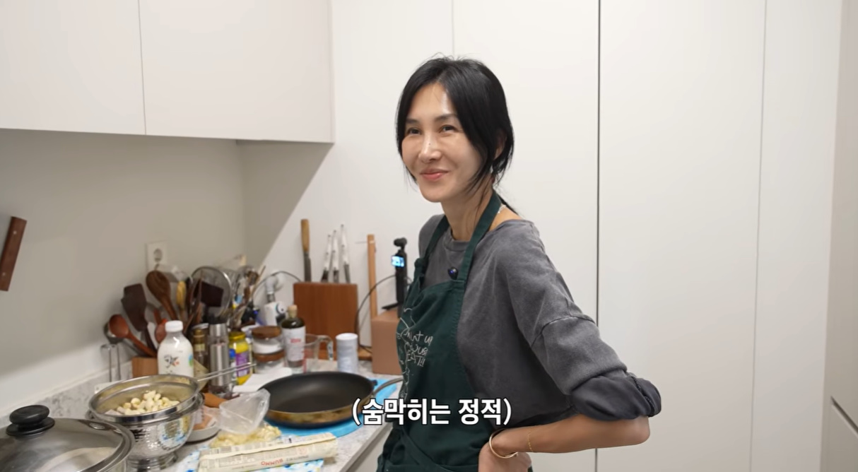 이에 대해 그는 "훨씬 금방 된다. 남편 이름 한 번씩 '엄태웅!'이러면서"라며 마늘을 찧는 모습으로 웃음을 줬다.
