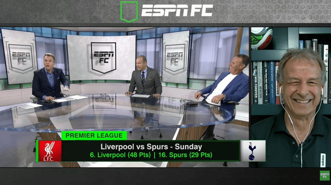 방송 말미에는 토트넘 감독직 가능성을 둘러싼 농담 섞인 대화도 이어졌다. 진행자가 "혹시 토트넘 감독직 제의를 받았는데 우리와 이야기를 하려고 거절한 것 아니냐"고 묻자 클린스만은 웃으며 대화를 이어갔다.