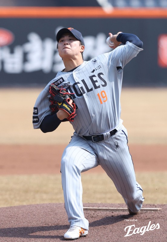 김경문 감독이 이끄는 한화는 지난 12일 대전 한화생명 볼파크에서 열린 2026 KBO 시범경기 개막전에서 삼성 라이온즈에 3-12로 완패를 당했다. 선발투수로 출격한 왕옌청이 3이닝 2피안타 3볼넷 2사구 3탈삼진 3실점으로  난조를 보이면서 게임 초반 흐름을 뺏길 수밖에 없었다.