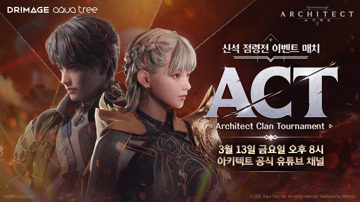 (엑스포츠뉴스 유희은 기자) 드림에이지(대표 정우용)는 자사가 서비스하고 아쿠아트리가 개발한 MMORPG ‘아키텍트: 랜드 오브 엑자일(이하 아키텍트)’이 인기 스트리머와 이용자가 함께하는 PvP 이벤트 ‘Architect Clan Tournament : 신석 점령전 이벤트 매치(이하 ACT)’를 공개한다고 13일 밝혔다.