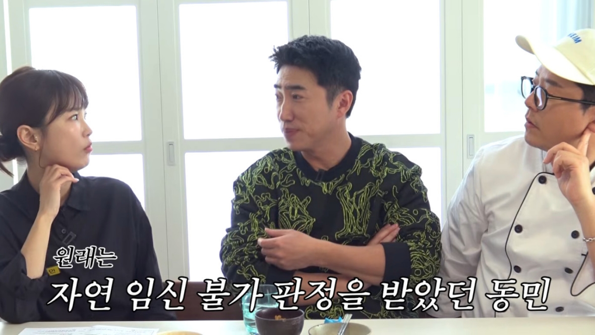 이에 장동민은 "자연임신이다. 사실 내가 자연임신 불가 판정을 받았다. 물고기 없고 양식장 거의 폐업 수준이었다. 물고기도 얼마 없는데 움직이지도 않았다. 그래서 난 아예 자연 임신은 상상도 하지 않고 포기했다"고 운을 뗐다.