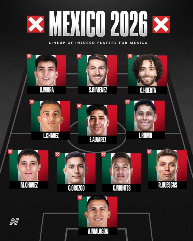 멕시코 관련 소식을 전하는 소셜미디어(SNS) 계정 '넥스트 멕스'는 최근 부상으로 출전하지 못하고 있는 멕시코 국가대표 선수들로만 구성된 베스트 일레븐을 공개해 눈길을 끌었다.